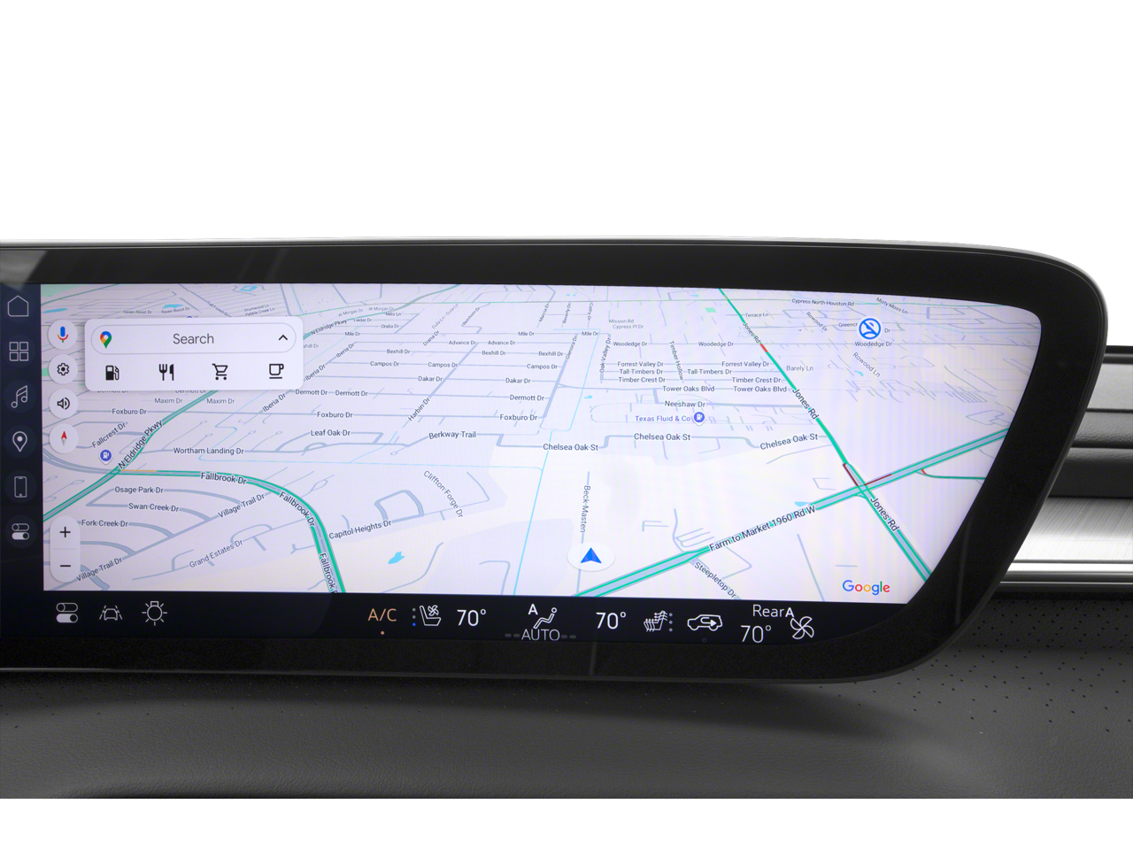 - Infotainment Center, customizable ultrawide 30" diagonal screen with Google built-in. Provides navigation capability, connected apps, personalized profiles for each driver's settings, Natural Voice Recognition and Phone Integration for Wireless Apple CarPlay/Wireless Android Auto for compatible phones