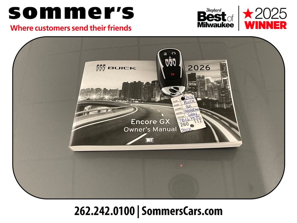 2026 Buick Encore GX Preferred Moonstone Gray Metallic 26/28 City/Highway MPG AWD 9-Speed Automatic ECOTEC 1.3L Turbo Price includes: $2000 - Bonus Cash. Exp. 04/30/2026