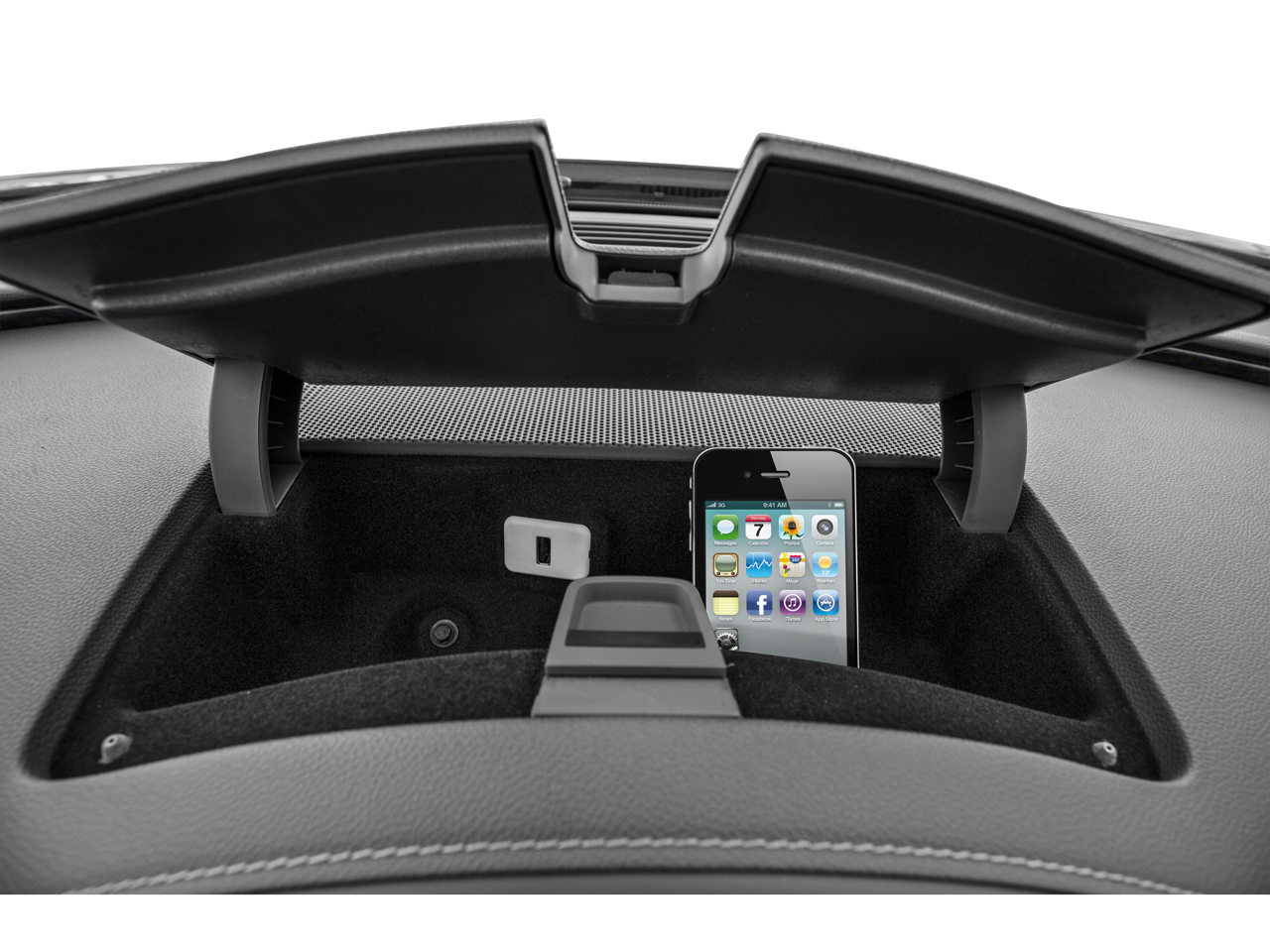 - Audio system feature, USB port, located in the center console