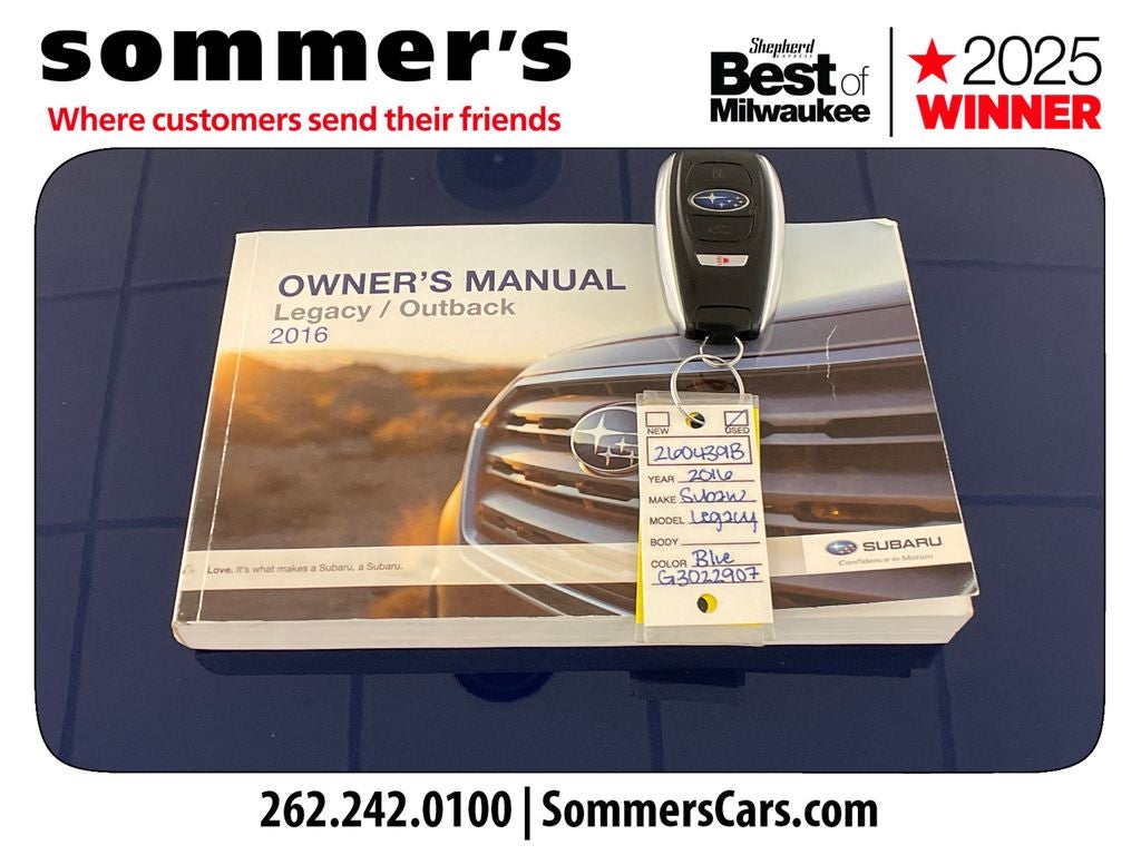 Find this 2016 Subaru Legacy 2.5i Limited at Sommer's Automotive in Mequon, just north of Milwaukee serving Wisconsin drivers in Cedarburg, Grafton, Port Washington, Shorewood, Whitefish Bay, Fox Point, Bayside, Glendale, Wauwatosa, Brookfield, West Bend, Menomonee Falls, Germantown, Sussex, Hartford, Oconomowoc, Pewaukee, New Berlin, Franklin, Oak Creek, Racine, Kenosha, Muskego, Mukwonago, Hales Corners, Cudahy, South Milwaukee, and many more communities throughout the greater Milwaukee, Ozaukee County, Washington County, Waukesha County, and southeastern Wisconsin area.