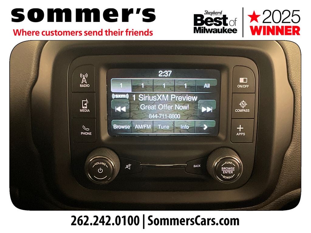Find this 2017 Jeep Renegade Latitude at Sommer's Automotive in Mequon, just north of Milwaukee serving Wisconsin drivers across Cedarburg, Grafton, Port Washington, Shorewood, Whitefish Bay, Fox Point, Bayside, Glendale, Wauwatosa, Brookfield, West Bend, Menomonee Falls, Germantown, Sussex, Hartford, Oconomowoc, Pewaukee, New Berlin, Franklin, Oak Creek, Racine, Kenosha, Muskego, Mukwonago, Hales Corners, Cudahy, South Milwaukee, and many more communities throughout the greater Milwaukee, Ozaukee County, Washington County, Waukesha County, and southeastern Wisconsin area.
