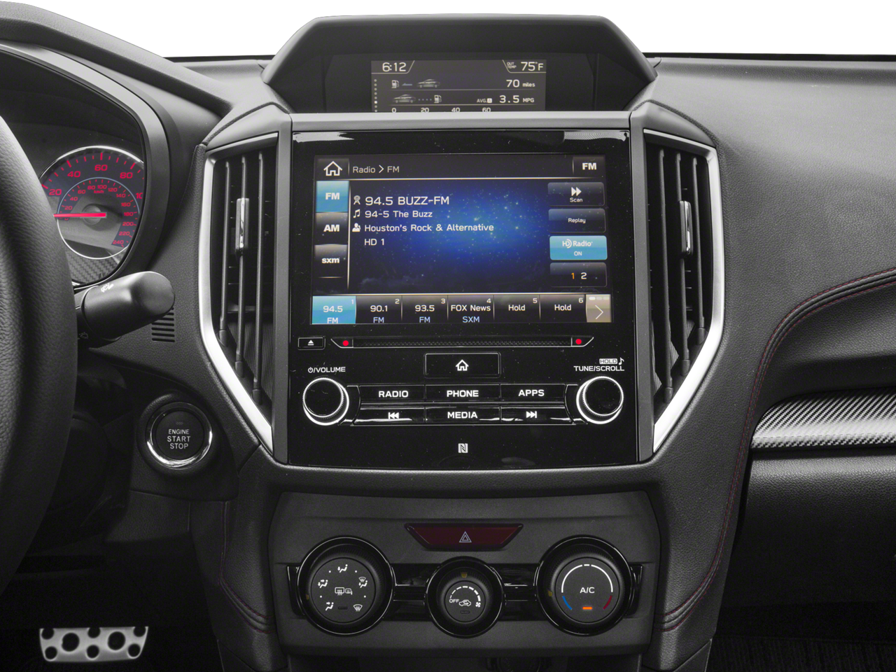 - Radio: Subaru Starlink 8.0" Multimedia Plus System -inc: AM/FM w/HD single disc CD player, MP3/WMA/CRR/RW file capability, multi touch gesture high resolution 8.0" LCD display screen, voice activated controls, Bluetooth® audio streaming connectivity, Bluetooth® hands-free phone connectivity, Bluetooth® hands-free text messaging connectivity, Near Field Communication (NFC), iPod control capability, rear vision camera, SiriusXM All Access radio (subscription required), SiriusXM Travel Link (subscription required), smartphone integration, AHA, Android Auto, CarPlay, Pandora, Starlink Cloud applications: bestparking, calendar, Glympse, iHeart radio, Magellan Navi, music player, news, Stitcher, weather, Yelp, dual USB ports, 3.5mm auxiliary input jack, 6 speakers and roof mounted audio/satellite and connected services antenna StarLink enrollment cannot be applicable to Fleet Management Companies (FMCs) or to Commercial fleet accounts at this time.