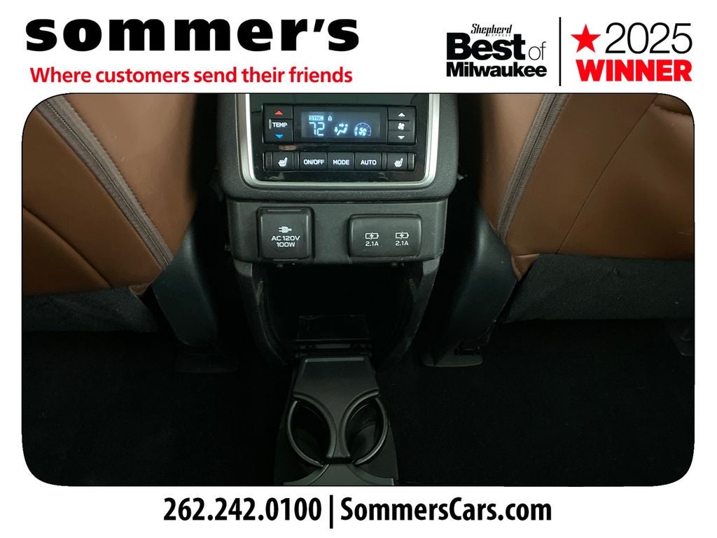 AWD | 2.4L turbo H-4 | CVT w/dual shift mode | 7-passenger seating | Panoramic moonroof | Leather seats | Heated and cooled front seats | Heated steering wheel | Navigation | Apple CarPlay | Android Auto | Backup camera | Power liftgate | Keyless entry | Power folding mirrors | LED headlights | Tow hitch | 20/26 city/highway MPG
