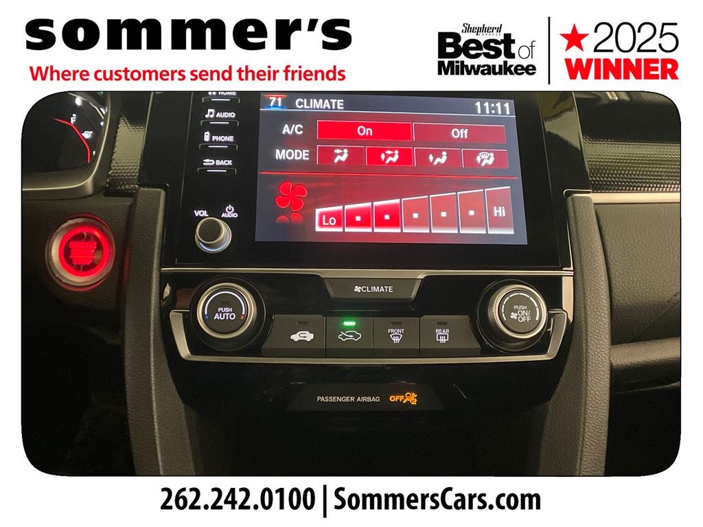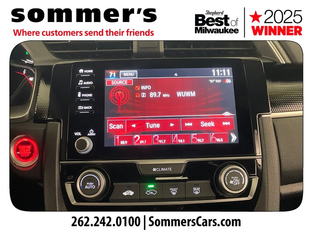- Radio: 180-Watt AM/FM Audio System -inc: 8 speakers, 7-inch display w/high-resolution electrostatic touch-screen, knob and hard keys for primary controls, customizable feature settings, Bluetooth® HandsFreeLink, Bluetooth® streaming audio, radio data system (RDS), speed-sensitive volume compensation (SVC), 1.5-amp USB smartphone/audio interface in front console, 1.0-amp USB audio interface port in center console, HondaLink, Apple CarPlay integration, Android Auto integration, SMS text message function and illuminated steering wheel-mounted controls