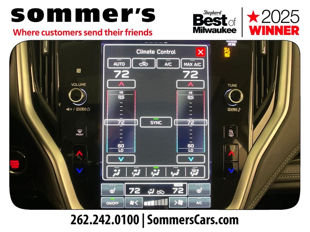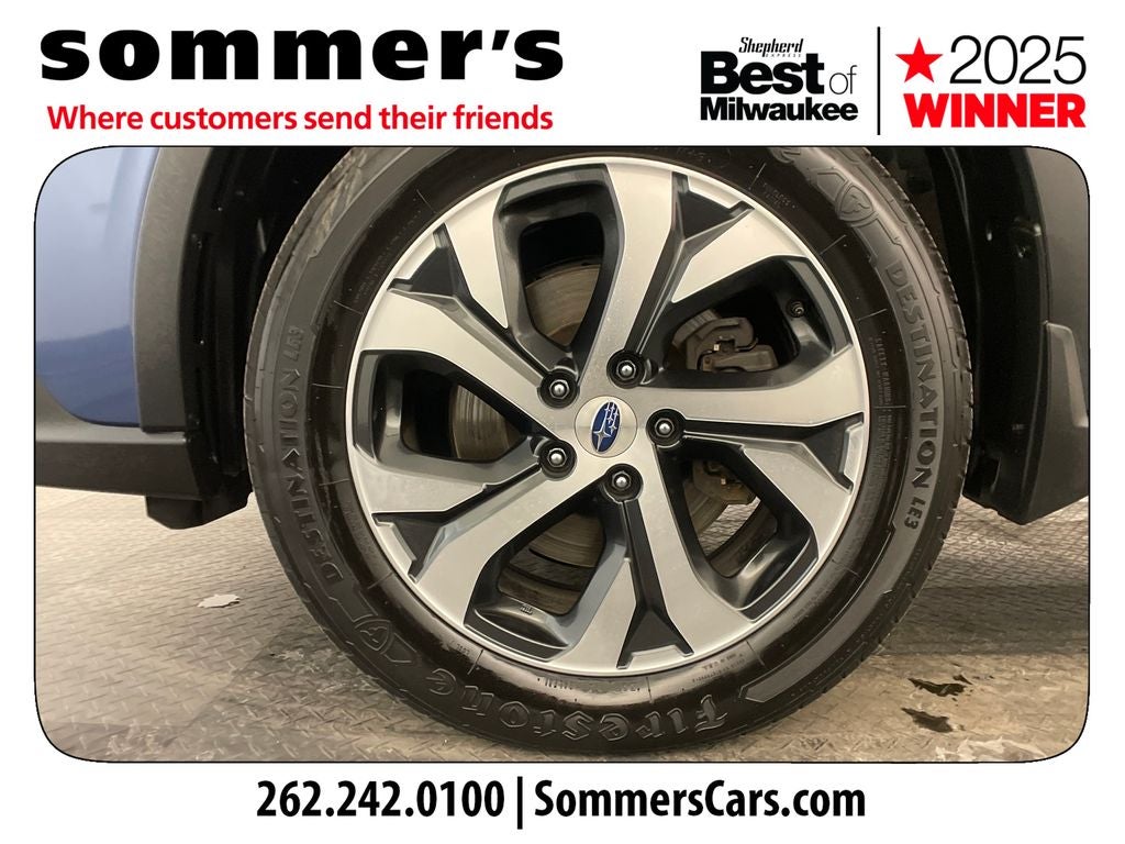 AWD | 2.4L turbo H-4 | CVT w/dual shift mode | Heated front and rear seats | Heated steering wheel | Leather w/driver/mirror/seat memory | Sunroof | Navigation system | Apple CarPlay/Android Auto | Premium sound | Hands-free power liftgate | LED auto-leveling headlights w/DRL | Blind spot monitor | Adaptive cruise w/lane keeping | Front collision mitigation | Tow hitch | Luggage rack | Abyss Blue Pearl | Aluminum wheels