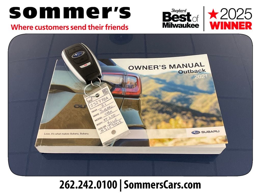 Find this 2021 Subaru Outback Limited XT at Sommer's Automotive in Mequon, just north of Milwaukee serving Wisconsin drivers from Cedarburg, Grafton, Port Washington, Shorewood, Whitefish Bay, Fox Point, Bayside, Glendale, Wauwatosa, Brookfield, West Bend, Menomonee Falls, Germantown, Sussex, Hartford, Oconomowoc, Pewaukee, New Berlin, Franklin, Oak Creek, Racine, Kenosha, Muskego, Mukwonago, Hales Corners, Cudahy, South Milwaukee, and many more communities throughout the greater Milwaukee, Ozaukee County, Washington County, Waukesha County, and southeastern Wisconsin area.