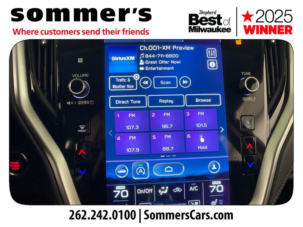 Step inside the spacious and well-appointed cabin, where premium features abound. Sink into the supportive and heated leather-trimmed seats, enjoy the convenience of the STARLINK 11.6 Multimedia Navigation System, and let the 12-speaker harman/kardon® Surround Sound system immerse you in your favorite tunes. The power liftgate, dual-zone automatic climate control, and a host of advanced safety technologies, including Eyesight Driver Assist Technology, ensure your comfort and peace of mind on every journey.