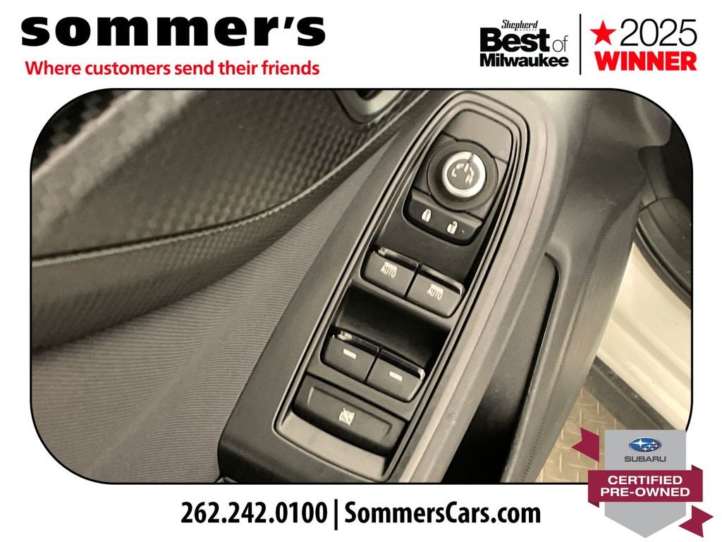 The 2.0L SUBARU BOXER engine, CVT, and full-time AWD deliver easy daily efficiency with steady traction when Wisconsin roads turn wet or slick. Brake assist and a brake actuated limited slip differential add extra control.
