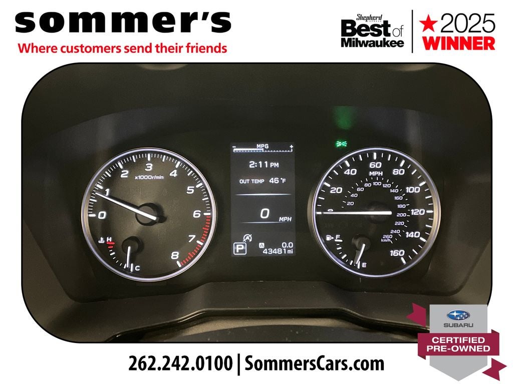 The 2.5L SUBARU BOXER engine pairs with a CVT and Symmetrical AWD for smooth, efficient performance and confident traction in changing Wisconsin conditions. Four-wheel disc brakes with ABS and Brake Assist enhance control.