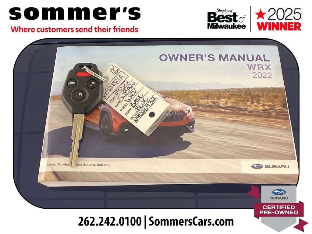 Find this 2022 Subaru WRX at Sommer's Automotive in Mequon, just north of Milwaukee serving Wisconsin drivers from Cedarburg, Grafton, Port Washington, Shorewood, Whitefish Bay, Fox Point, Bayside, Glendale, Wauwatosa, Brookfield, West Bend, Menomonee Falls, Germantown, Sussex, Hartford, Oconomowoc, Pewaukee, New Berlin, Franklin, Oak Creek, Racine, Kenosha, Muskego, Mukwonago, Hales Corners, Cudahy, South Milwaukee, and many more communities throughout the greater Milwaukee, Ozaukee County, Washington County, Waukesha County, and southeastern Wisconsin area.