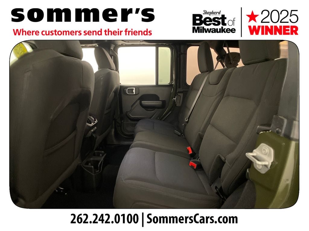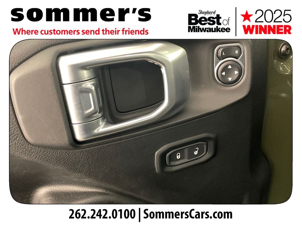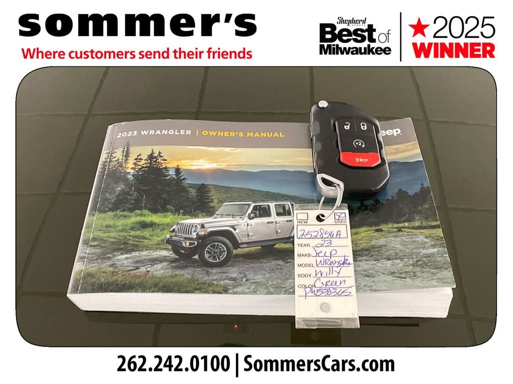 Find this 2023 Jeep Wrangler 4 Door Willys at Sommer's Automotive in Mequon, just north of Milwaukee serving Wisconsin drivers across Cedarburg, Grafton, Port Washington, Shorewood, Whitefish Bay, Fox Point, Bayside, Glendale, Wauwatosa, Brookfield, West Bend, Menomonee Falls, Germantown, Sussex, Hartford, Oconomowoc, Pewaukee, New Berlin, Franklin, Oak Creek, Racine, Kenosha, Muskego, Mukwonago, Hales Corners, Cudahy, South Milwaukee, and many more communities throughout the greater Milwaukee, Ozaukee County, Washington County, Waukesha County, and southeastern Wisconsin area.