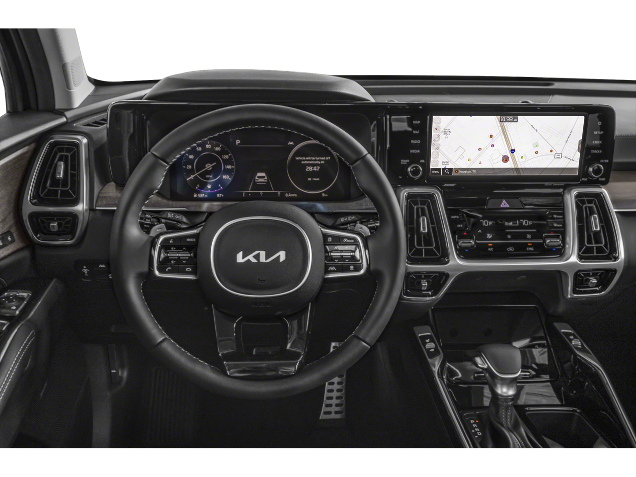 The Sorento's striking exterior is complemented by a stunning Green paint color, accented by sleek 20-inch matte gray alloy wheels. Step inside, and you'll be surrounded by premium Perforated Genuine Leather seating, offering unmatched luxury and comfort.