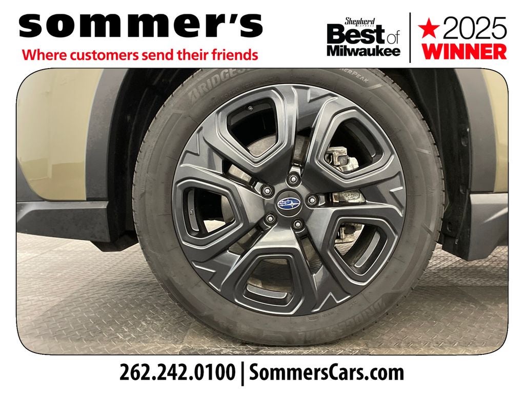 - Wheels: 20" x 7.5 J Aluminum Alloy w/Black Finish -inc: wheel center cap w/Subaru 6 star logo