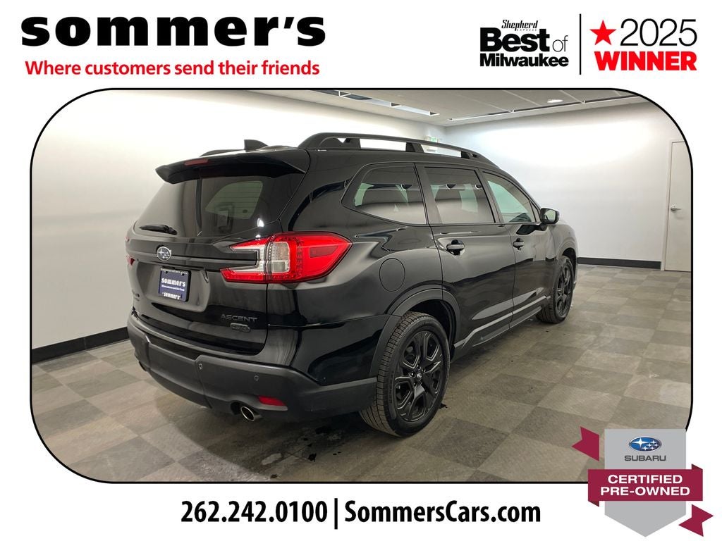 Find this 2023 Subaru Ascent Onyx Edition at Sommer's Automotive in Mequon, just north of Milwaukee serving Wisconsin drivers from Cedarburg, Grafton, Port Washington, Shorewood, Whitefish Bay, Fox Point, Bayside, Glendale, Wauwatosa, Brookfield, West Bend, Menomonee Falls, Germantown, Sussex, Hartford, Oconomowoc, Pewaukee, New Berlin, Franklin, Oak Creek, Racine, Kenosha, Muskego, Mukwonago, Hales Corners, Cudahy, South Milwaukee, and many more communities throughout the greater Milwaukee, Ozaukee County, Washington County, Waukesha County, and southeastern Wisconsin area.