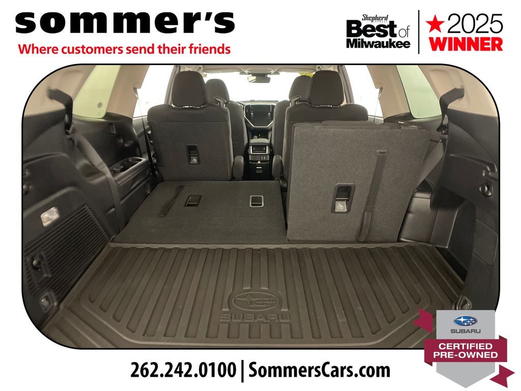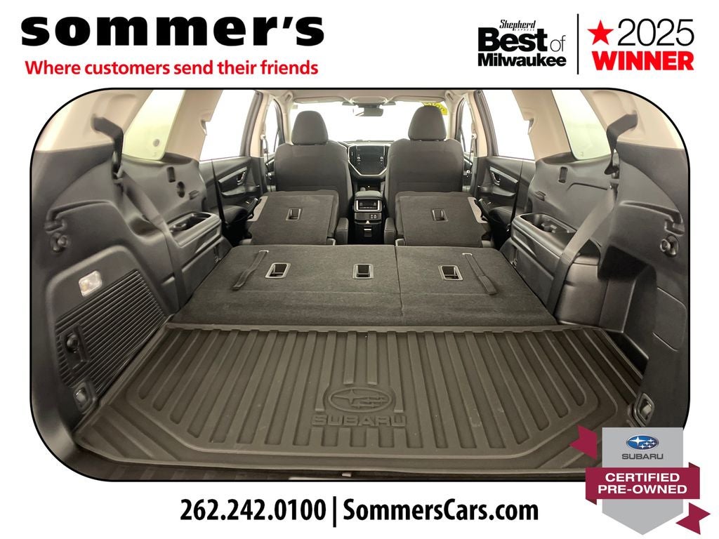 Find this 2023 Subaru Ascent Premium 7-Passenger at Sommer's Automotive in Mequon, just north of Milwaukee serving Wisconsin drivers from Cedarburg, Grafton, Port Washington, Shorewood, Whitefish Bay, Fox Point, Bayside, Glendale, Wauwatosa, Brookfield, West Bend, Menomonee Falls, Germantown, Sussex, Hartford, Oconomowoc, Pewaukee, New Berlin, Franklin, Oak Creek, Racine, Kenosha, Muskego, Mukwonago, Hales Corners, Cudahy, South Milwaukee, and many more communities throughout the greater Milwaukee, Ozaukee County, Washington County, Waukesha County, and southeastern Wisconsin area.