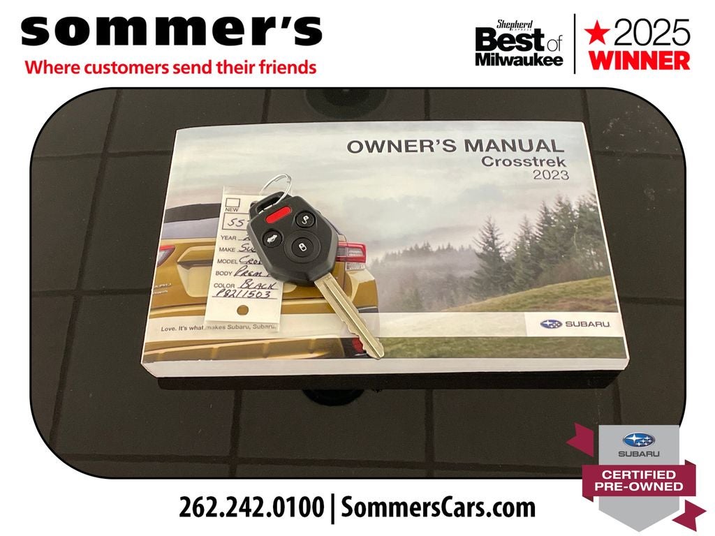 Find this 2023 Subaru Crosstrek Premium at Sommer's Automotive in Mequon, just north of Milwaukee serving Wisconsin drivers from Cedarburg, Grafton, Port Washington, Shorewood, Whitefish Bay, Fox Point, Bayside, Glendale, Wauwatosa, Brookfield, West Bend, Menomonee Falls, Germantown, Sussex, Hartford, Oconomowoc, Pewaukee, New Berlin, Franklin, Oak Creek, Racine, Kenosha, Muskego, Mukwonago, Hales Corners, Cudahy, South Milwaukee, and many more communities throughout the greater Milwaukee, Ozaukee County, Washington County, Waukesha County, and southeastern Wisconsin area.
