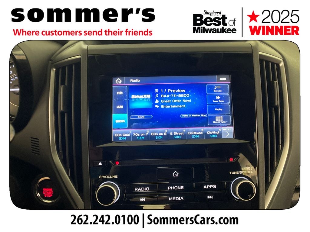 - Radio: Subaru STARLINK 6.5" Multimedia Plus System -inc: AM/FM stereo, HD Radio, single disc CD player w/MP3/WMA/CRR/RW file capability, multi-touch gesture high resolution display screen, voice activated controls, Bluetooth® audio streaming and hands-free phone connectivity, Bluetooth® hands-free SMS text messaging connectivity, iPod control capability, rear-vision camera display, SiriusXM All Access radio (4 months free trial/subscription required after), SiriusXM Travel Link (4 months free trial/subscription required after), smartphone integration: AHA, Android Auto, Apple CarPlay, Pandora, STARLINK cloud applications, 6 speakers, 3.5mm auxiliary input jack, dual USB A input charge ports, roof mounted antenna and audio/satellite connected services