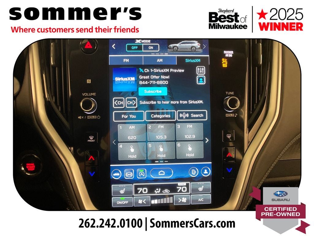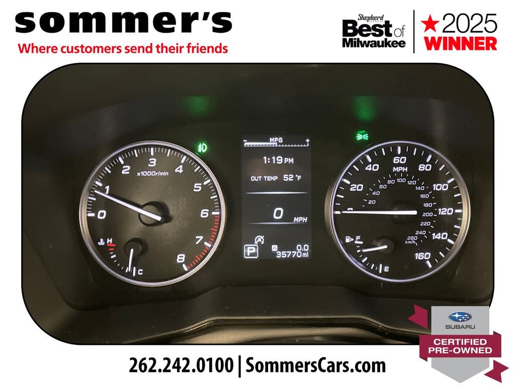 AWD | 2.5L H4 | CVT w/Dual Shift Mode | 26/32 City/Highway MPG | Hands-Free Power Liftgate | Blind Spot Monitor | Cross-Traffic Alert | Heated Front Seats | 8-Way Power Driver Seat | Adaptive Cruise Control | Apple CarPlay & Android Auto | LED Headlights | Aluminum Wheels | Keyless Access w/Push-Button Start | EyeSight Pre-Collision Braking | Back-Up Camera | Dual-Zone Climate Control
