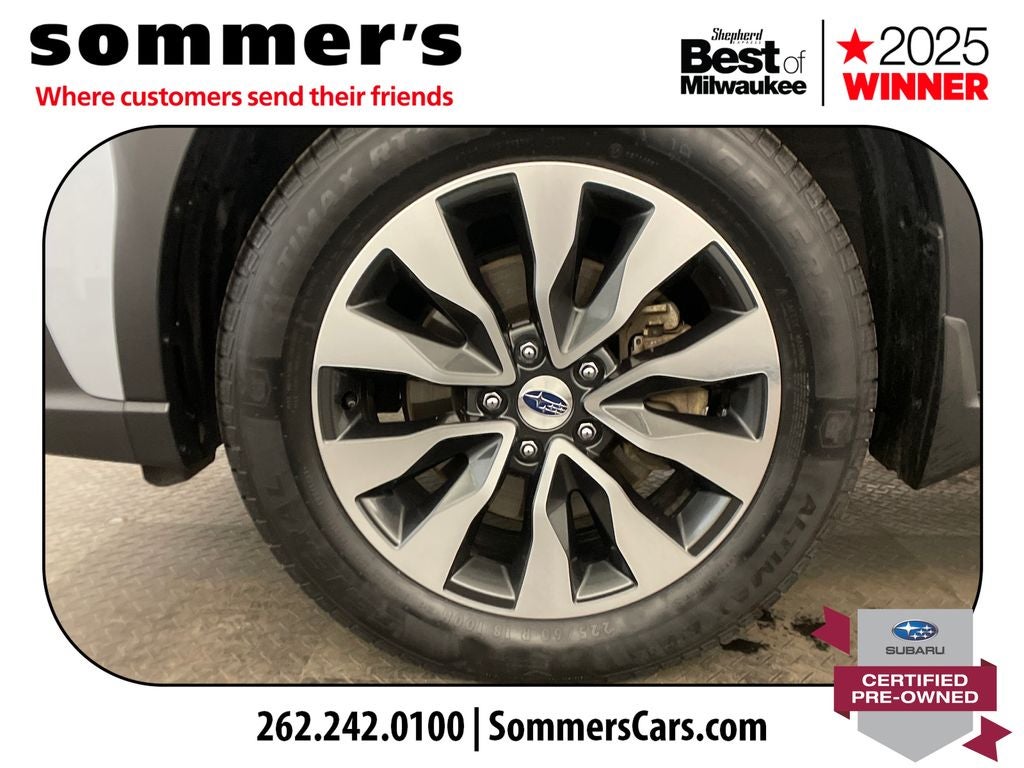 AWD | 2.5L H4 | CVT w/Dual Shift Mode | 26/32 City/Highway MPG | Power Sun/Moonroof | Nappa Leather Seats | Heated & Ventilated Front Seats | Heated Rear Seats | Heated Steering Wheel | Navigation System | Apple CarPlay & Android Auto | Hands-Free Power Liftgate | Harman Kardon Premium Audio | Blind Spot Monitor | Adaptive Cruise Control | LED Headlights | Aluminum Wheels | Keyless Access w/Push-Button Start
