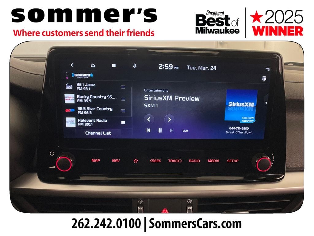 - Radio: 10.25" Display Audio -inc: 6 speakers, 10.25" touch screen, navigation, Kia Connect, HD radio, Apple CarPlay, Android Auto, Bluetooth® hands-free and USB input