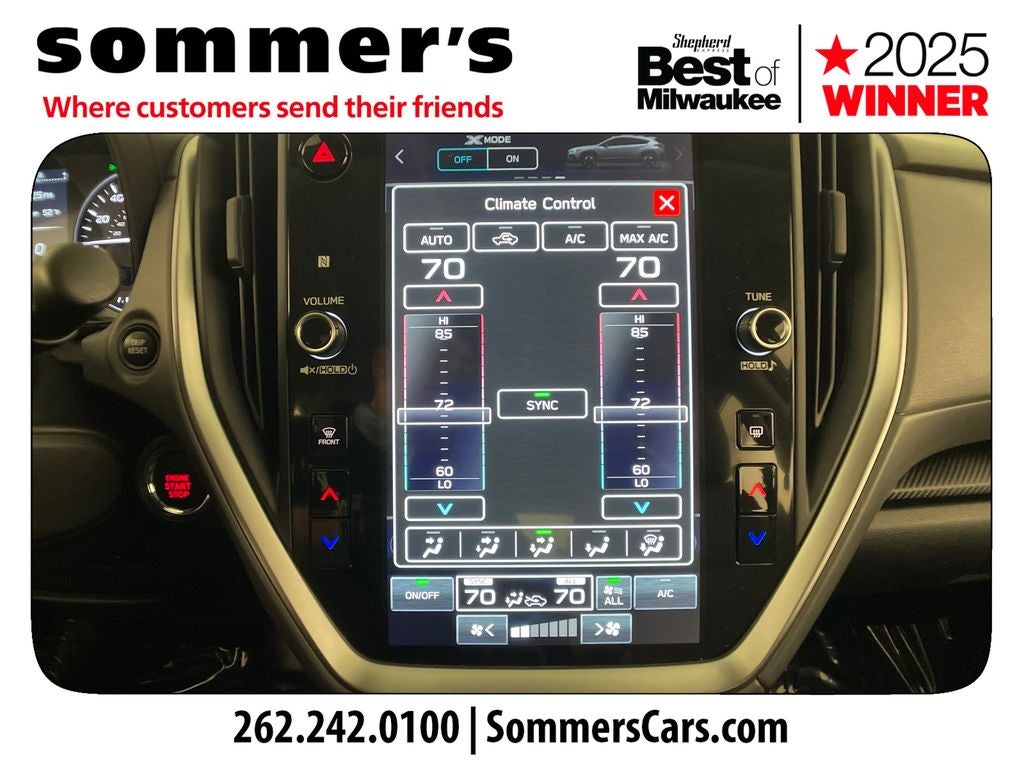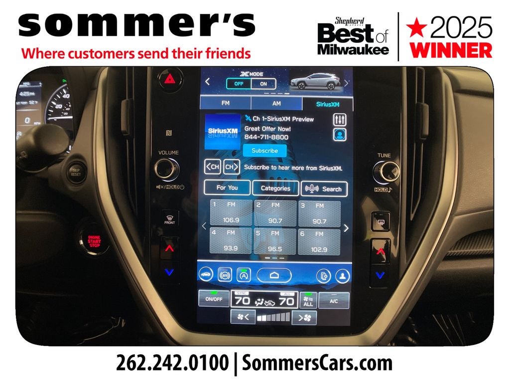 - Radio: Subaru STARLINK 11.6" Multimedia Plus Sys -inc: AM/FM stereo, HD Radio, multi-touch gesture high resolution display screen, voice activated controls, Bluetooth® audio streaming and hands-free phone connectivity, Bluetooth® hands-free SMS text messaging connectivity, iPod control capability, SiriusXM All Access Radio (4 months free trial included/subscription required after), SiriusXM Travel Link (4 months free trial included/subscription required after), smartphone integration: Android Auto and Apple CarPlay w/full screen view and wireless connection, USB and Over The Air (OTA) audio system update, steering wheel audio system and Bluetooth® control switches, 6 speakers (2 dash panel tweeter, 2 front door and 2 rear door), illuminated 3.5mm auxiliary input jack, illuminated front USB A and C input/charge ports and illuminated rear USB A and C charge ports