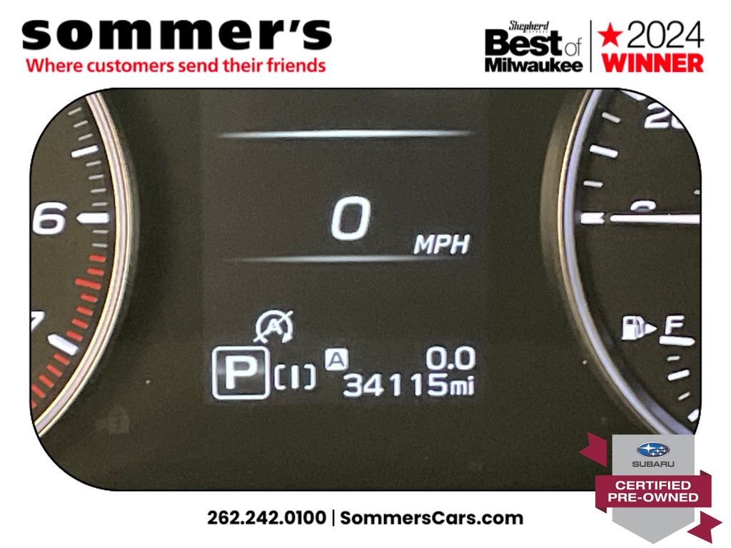 AWD | 2.0L H-4 | Lineartronic CVT | 27/34 MPG | Sun/moonroof | Heated front seats | Power driver seat w/lumbar | Driver Monitoring | Apple CarPlay & Android Auto | WiFi hotspot | Back-up camera | Auto-dimming mirror & universal garage door opener | Keyless entry & push-button start | Bluetooth® audio/phone | LED headlights w/auto-leveling & auto high beams | Fog lamps | Blind spot monitor & rear cross-traffic alert | EyeSight pre-collision braking, lane keep assist, adaptive cruise | Rear spoiler | Heated mirrors w/turn signals | Aluminum wheels | Magnetite Gray Metallic | Black interior