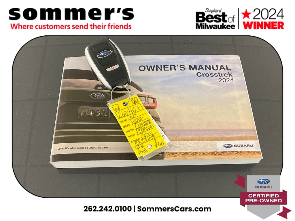 Find this 2024 Subaru Crosstrek Premium at Sommer's Automotive in Mequon, just north of Milwaukee serving Wisconsin drivers from Cedarburg, Grafton, Port Washington, Shorewood, Whitefish Bay, Fox Point, Bayside, Glendale, Wauwatosa, Brookfield, West Bend, Menomonee Falls, Germantown, Sussex, Hartford, Oconomowoc, Pewaukee, New Berlin, Franklin, Oak Creek, Racine, Kenosha, Muskego, Mukwonago, Hales Corners, Cudahy, South Milwaukee, and many more communities throughout the greater Milwaukee, Ozaukee County, Washington County, Waukesha County, and southeastern Wisconsin area.