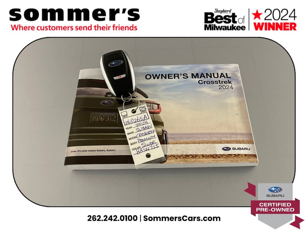 Find this 2024 Subaru Crosstrek Premium at Sommer's Automotive in Mequon, just north of Milwaukee serving Wisconsin drivers across Cedarburg, Grafton, Port Washington, Shorewood, Whitefish Bay, Fox Point, Bayside, Glendale, Wauwatosa, Brookfield, West Bend, Menomonee Falls, Germantown, Sussex, Hartford, Oconomowoc, Pewaukee, New Berlin, Franklin, Oak Creek, Racine, Kenosha, Muskego, Mukwonago, Hales Corners, Cudahy, South Milwaukee, and many more communities throughout the greater Milwaukee, Ozaukee County, Washington County, Waukesha County, and southeastern Wisconsin area.
