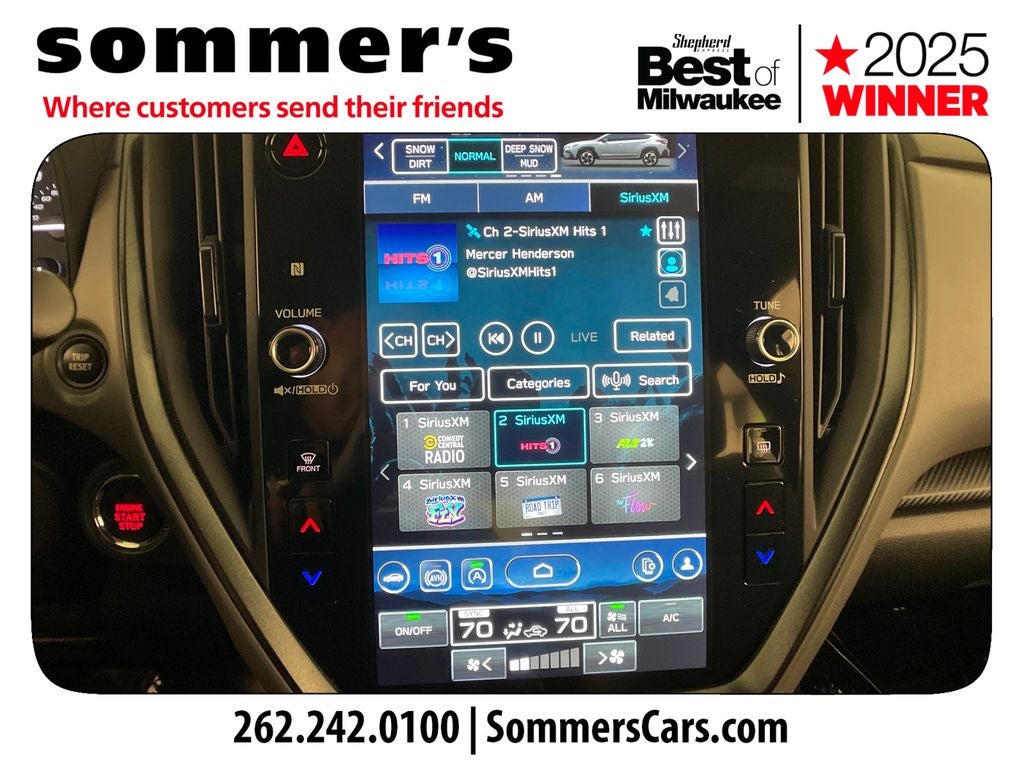 - Radio: Subaru STARLINK 11.6" Multimedia Plus Sys -inc: AM/FM stereo, HD Radio, multi-touch gesture high resolution display screen, voice activated controls, Bluetooth® audio streaming and hands-free phone connectivity, Bluetooth® hands-free SMS text messaging connectivity, iPod control capability, SiriusXM All Access Radio (4 months free trial included/subscription required after), SiriusXM Travel Link (4 months free trial included/subscription required after), smartphone integration: Android Auto and Apple CarPlay w/full screen view and wireless connection, USB and Over The Air (OTA) audio system update, steering wheel audio system and Bluetooth® control switches, 6 speakers (2 dash panel tweeter, 2 front door and 2 rear door), illuminated 3.5mm auxiliary input jack, illuminated front USB A and C input/charge ports and illuminated rear USB A and C charge ports