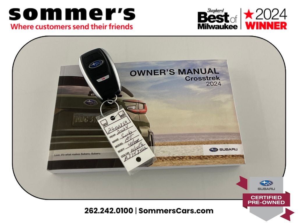Find this 2024 Subaru Crosstrek Sport at Sommer's Automotive in Mequon, just north of Milwaukee serving Wisconsin drivers across Cedarburg, Grafton, Port Washington, Shorewood, Whitefish Bay, Fox Point, Bayside, Glendale, Wauwatosa, Brookfield, West Bend, Menomonee Falls, Germantown, Sussex, Hartford, Oconomowoc, Pewaukee, New Berlin, Franklin, Oak Creek, Racine, Kenosha, Muskego, Mukwonago, Hales Corners, Cudahy, South Milwaukee, and many more communities throughout the greater Milwaukee, Ozaukee County, Washington County, Waukesha County, and southeastern Wisconsin area.