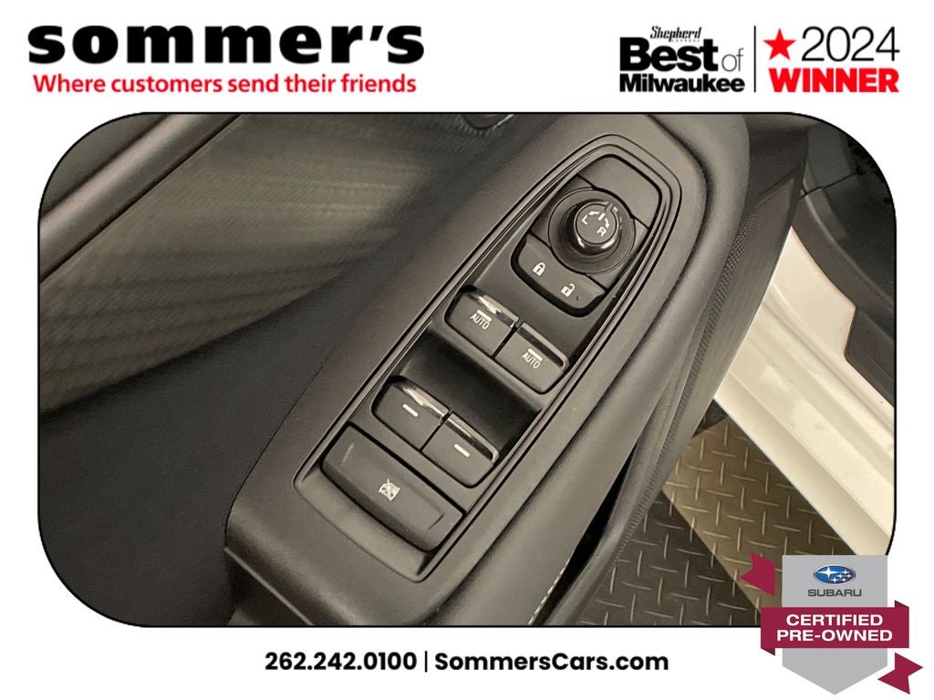 AWD | 2.5L H-4 | CVT | 27/35 MPG | Apple CarPlay/Android Auto | Bluetooth® | Back-Up Camera | Adaptive Cruise Control | EyeSight Pre-Collision Braking | Lane Departure Warning w/Assist | LED Headlights & DRL | Automatic High Beams | Aluminum Wheels | Crystal White Pearl | Auto-Dimming Mirror w/Universal Garage Door Opener | Keyless Entry/Power Locks | A/C Climate Control | Cloth Seats, Slate Black