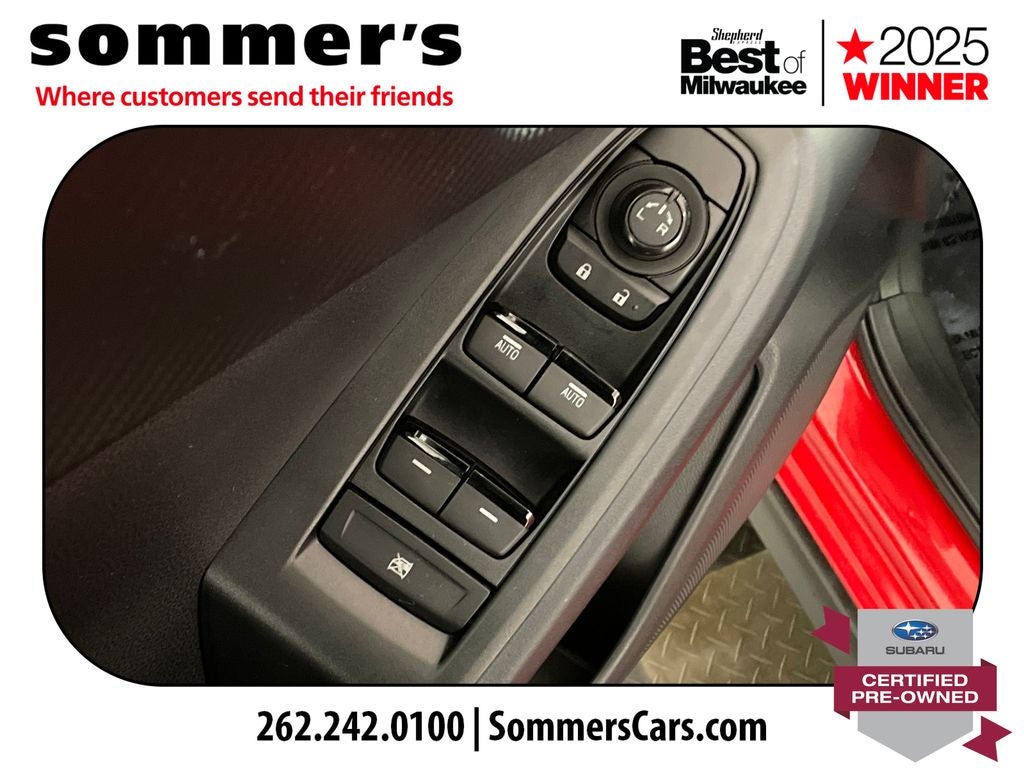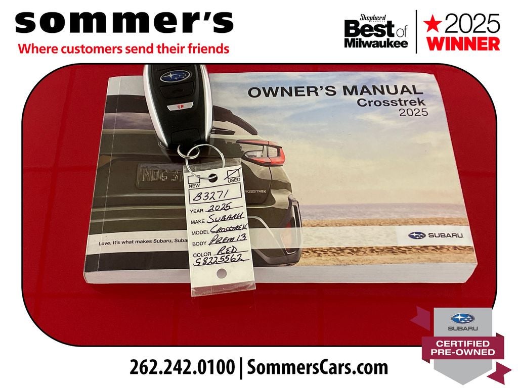 Find this 2025 Subaru Crosstrek Premium at Sommer's Automotive in Mequon, just north of Milwaukee serving Wisconsin drivers from Cedarburg, Grafton, Port Washington, Shorewood, Whitefish Bay, Fox Point, Bayside, Glendale, Wauwatosa, Brookfield, West Bend, Menomonee Falls, Germantown, Sussex, Hartford, Oconomowoc, Pewaukee, New Berlin, Franklin, Oak Creek, Racine, Kenosha, Muskego, Mukwonago, Hales Corners, Cudahy, South Milwaukee, and many more communities throughout the greater Milwaukee, Ozaukee County, Washington County, Waukesha County, and southeastern Wisconsin area.