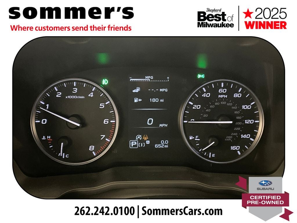 The 2.5L SUBARU BOXER engine pairs with a CVT featuring Dual Shift Mode and Symmetrical AWD for smooth acceleration and confident traction in changing Wisconsin conditions. Four-wheel disc brakes with ABS and Brake Assist enhance control.