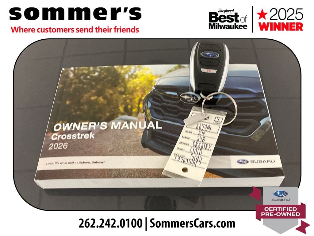Find this 2026 Subaru Crosstrek Limited at Sommer's Automotive in Mequon, just north of Milwaukee serving Wisconsin drivers from Cedarburg, Grafton, Port Washington, Shorewood, Whitefish Bay, Fox Point, Bayside, Glendale, Wauwatosa, Brookfield, West Bend, Menomonee Falls, Germantown, Sussex, Hartford, Oconomowoc, Pewaukee, New Berlin, Franklin, Oak Creek, Racine, Kenosha, Muskego, Mukwonago, Hales Corners, Cudahy, South Milwaukee, and many more communities throughout the greater Milwaukee, Ozaukee County, Washington County, Waukesha County, and southeastern Wisconsin area.