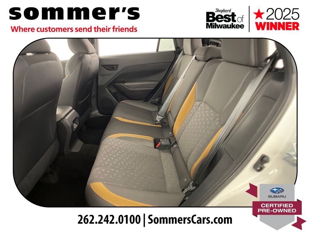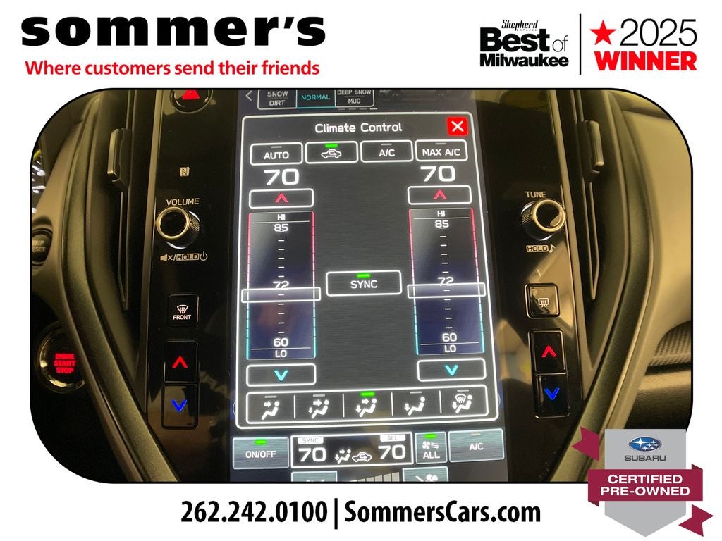 - Radio: Subaru 11.6" Multimedia Plus System -inc: AM/FM stereo, HD Radio, multi-touch gesture high resolution display screen, voice activated controls, Bluetooth® audio streaming and hands-free phone connectivity, Bluetooth® hands-free SMS text messaging connectivity, iPod control capability, smartphone integration: wired and wireless Android Auto w/full screen view and wireless Apple CarPlay w/full screen view, USB and Over The Air (OTA) audio system update, steering wheel audio system and Bluetooth® control switches, 6 speakers (2 dash panel tweeter, 2 front door and 2 rear door), illuminated 3.5mm auxiliary input jack, illuminated front USB A and C input/charge ports, connected services operation indicator, SOS emergency assistance: red SOS button and enhanced roadside assistance: blue i-button